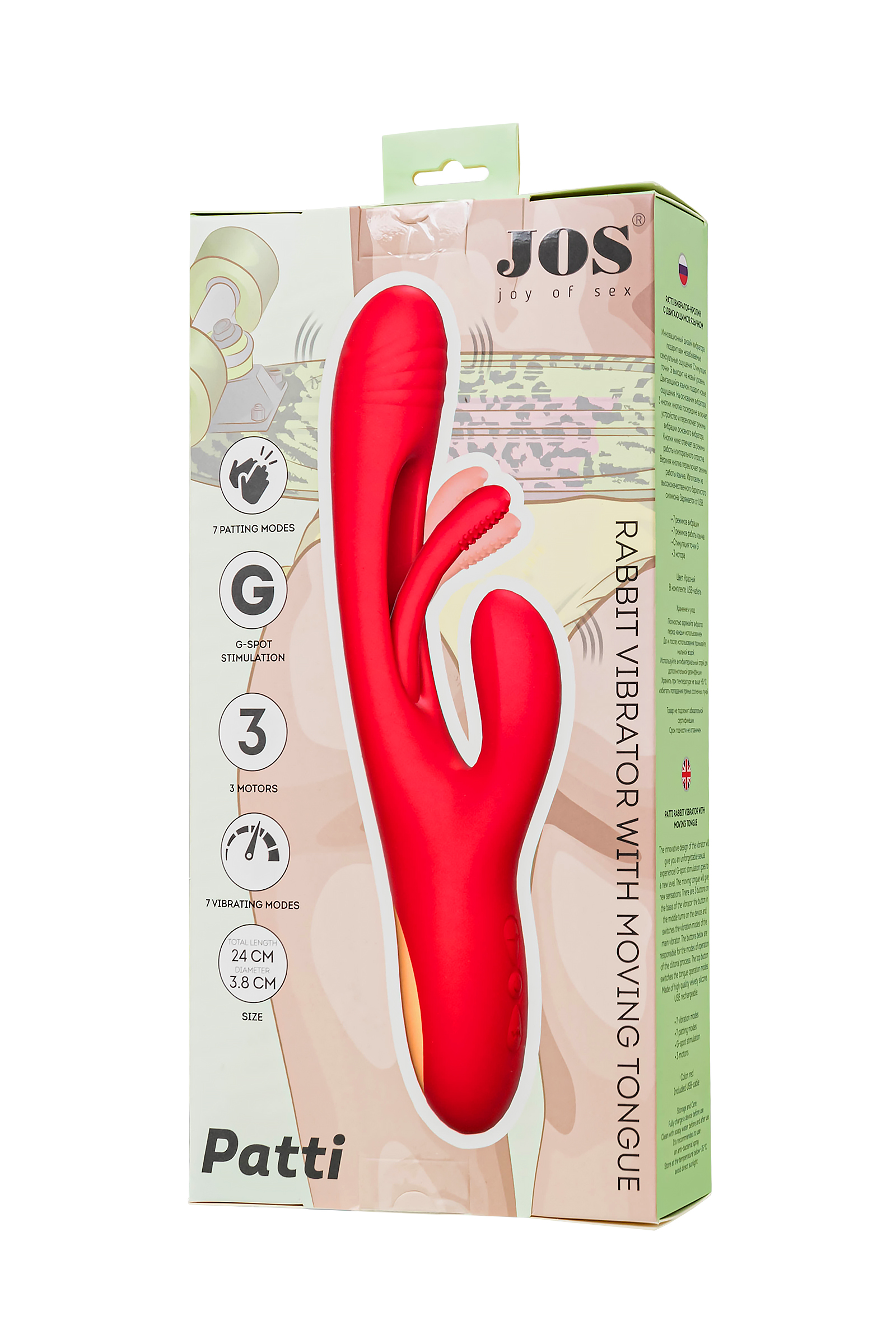 JOS Patti Hareketli Dilli Vibratör - Kırmızı Silikon, 24 cm